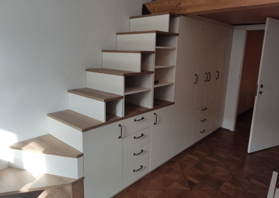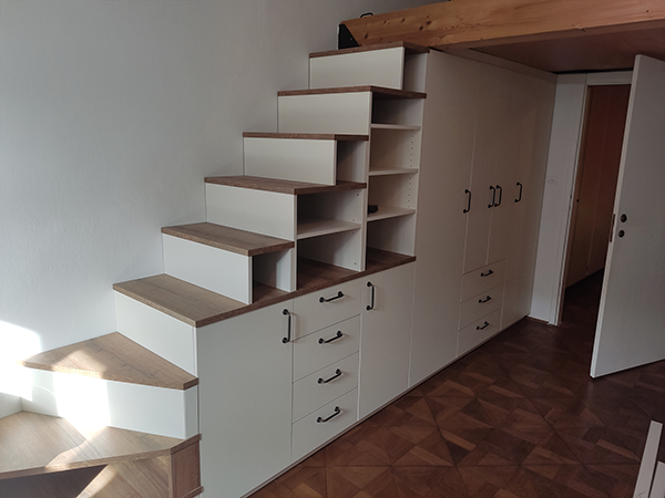 Seveda, pohištvo prilagodimo po meri tudi za manjše in nestandardne prostore, kjer je potrebna natančna izraba prostora.